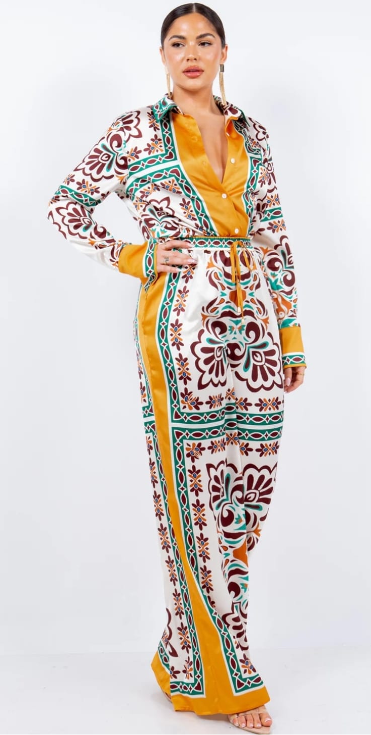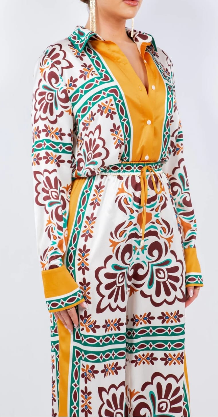 Contrast waist tailored pants with V-Neck Vest top